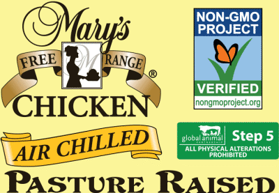 Mary’s Chickens are fed a high quality vegetable diet with no animal by-products or additives. Every effort is made to treat our chickens as humanely as possible throughout the production process.